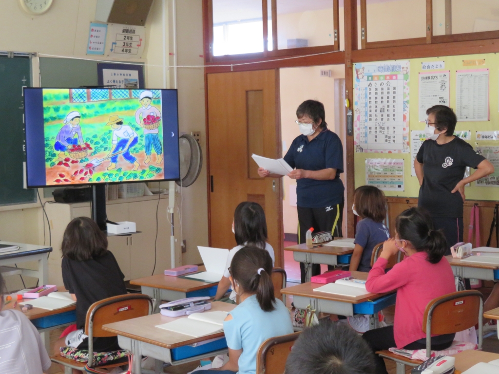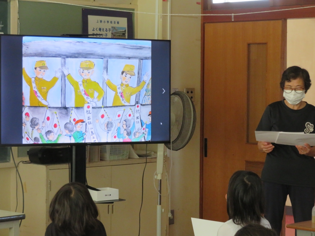 3年生が、地域の方が作成した紙芝居をもとに戦争のお話を聞きました。「語り」は中村先生、相川先生が担当しました。
