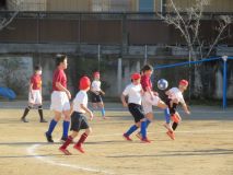 2月27日、サッカー部のお別れ試合を行いました。ユニホームに身を包んだ6年生チームに対するのは、4,5年生と先生方の混合チームです。真剣勝負の中にも笑顔がはじけ、楽しいひと時を過ごしました。6年生は、今日を最後にサッカー部を引退します。