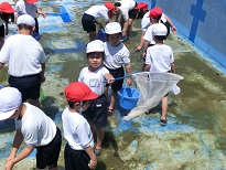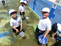 5月24日(金)、1・2年生は、プールで、生き物探しを行いました。