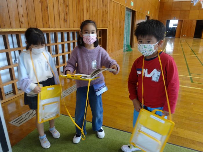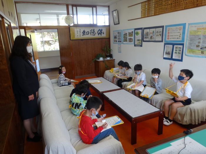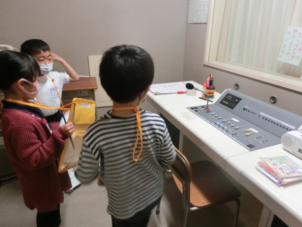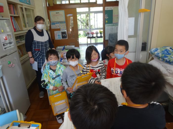 生活科の学習で1,2年生が学校探検を行いました。2年生が、1年生とグループになって、学校のいろいろな場所を案内しました。