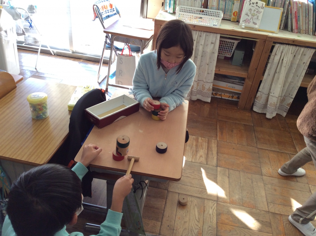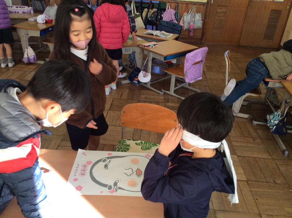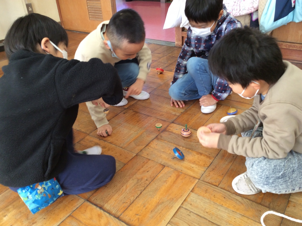 こまやおはじき、けん玉、はねつき、福笑いなど、いろいろな遊びを体験しながら、仲良く楽しく遊びました。