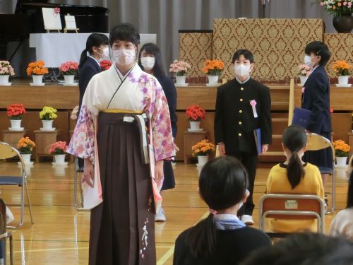 厳かな中に、感動と温かな祝福にあふれた、すばらしい卒業式となりました。