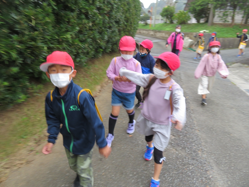 途中雨が降ってきましたが、安全に気を付けて歩きました。訪問先では、元気いっぱいあいさつをし、全員が大きな声で質問をすることができました。
