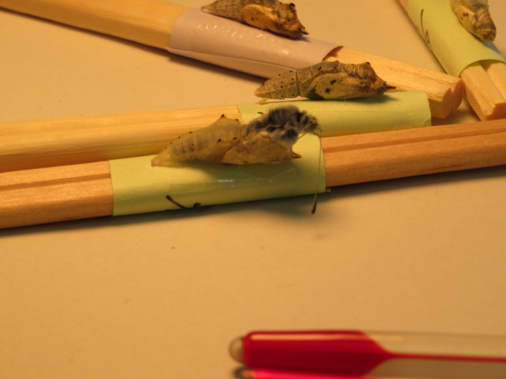約20分ほどの間に、全員のさなぎが羽化し、子供達は羽がまっすぐに伸びていく様子を真剣に観察し、丁寧に記録しました。