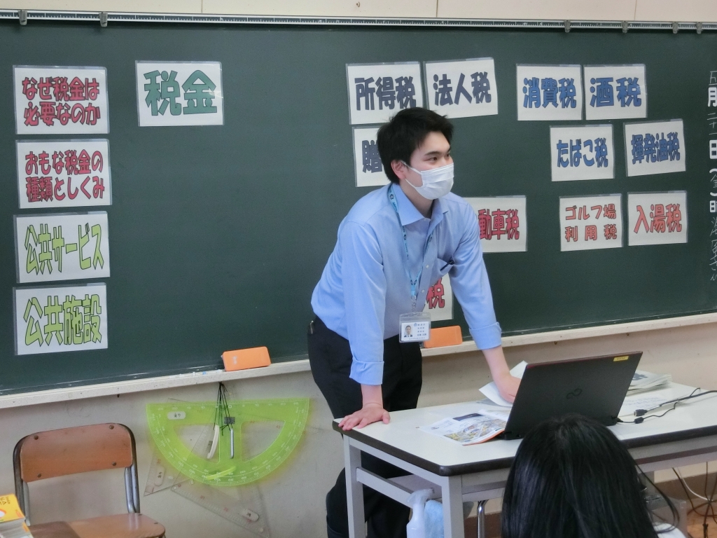 市税務課の職員の方をお迎えし、6年生が租税教室を行いました。税金の種類や、税金がどのように使われているかを学びました。私たちの安全で安心な生活は、税金によってつくられていることがわかりました。