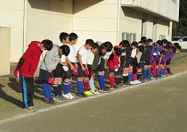 2月12日、「サッカー部6年生のお別れ試合」を行いました。初めは、「6年生」対「4、5年生」で対戦し、その後「6年生」対「先生方5名を含んだ5年生以下児童」で対戦しました。結果は、1対1で引き分けで、お互いの雄姿を称え合いました。6年生のサッカー部の皆さん、今までありがとうございました。