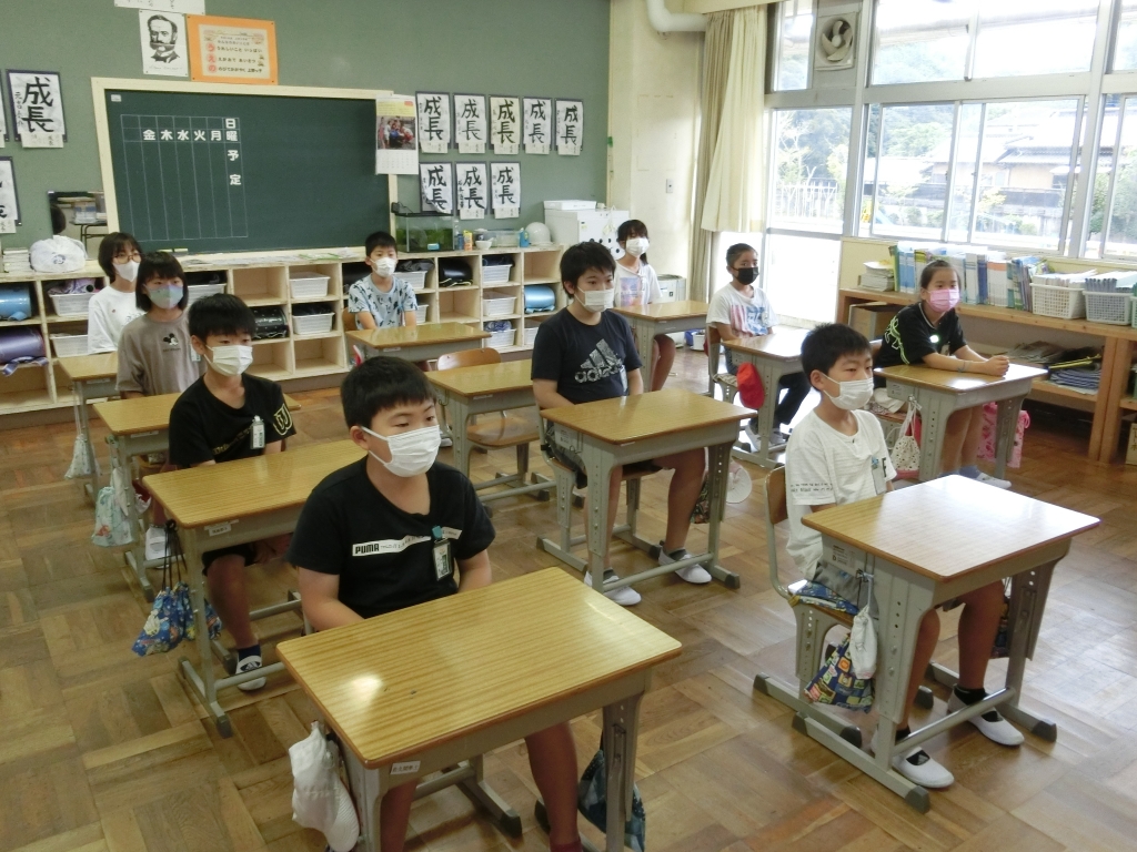 感染防止のため、全校一斉避難は行わず、学年で地震避難の方法を学びました。