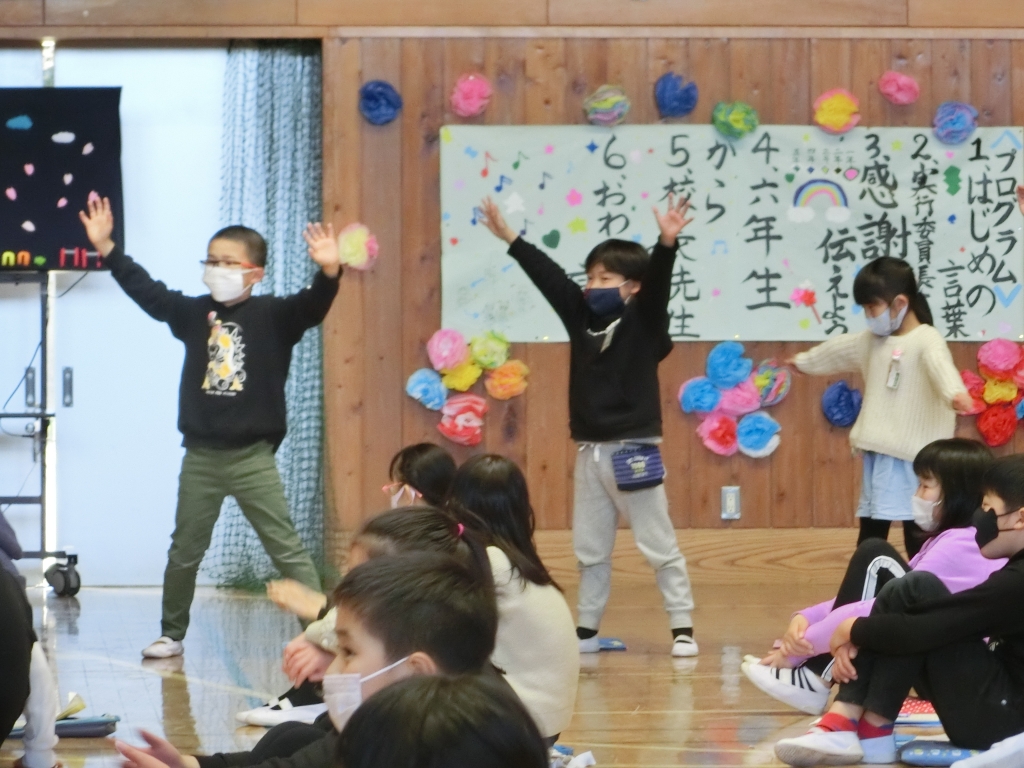 企画・運営は5年生。実行委員長から、「今日は、6年生に感謝の気持ちを伝えましょう。」と挨拶がありました。