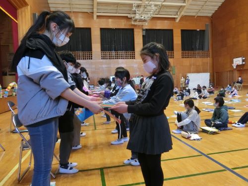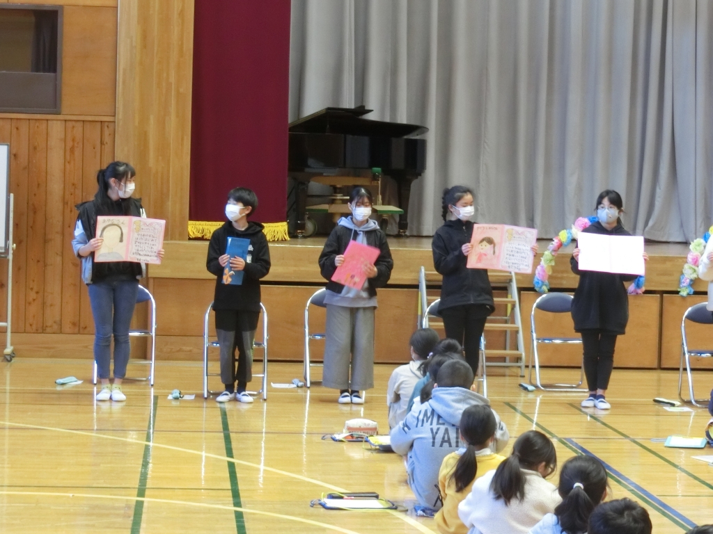各学年からのプレゼントに、6年生は皆「ありがとう」と笑顔でこたえていました。