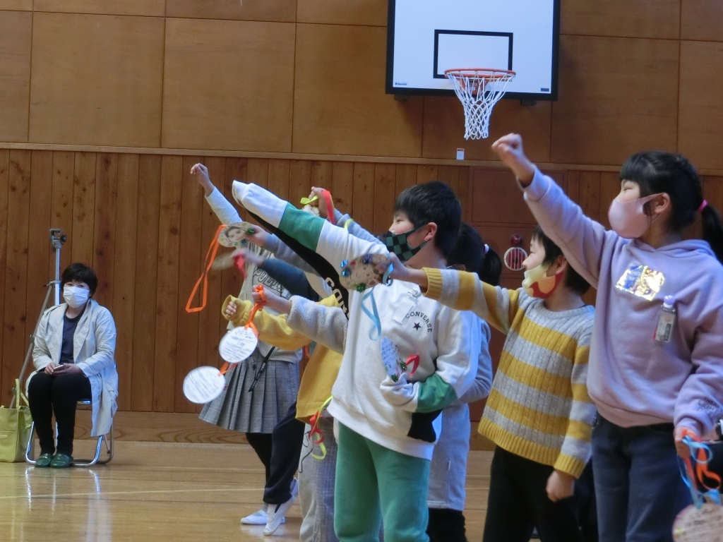 3年生は、6年生への力強いエールとメダルのプレゼント。