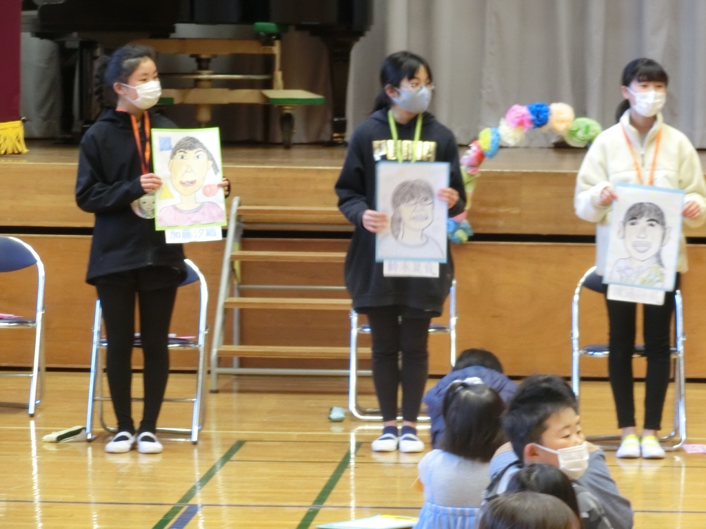 4年生は、感謝の言葉と、似顔絵を送りました。