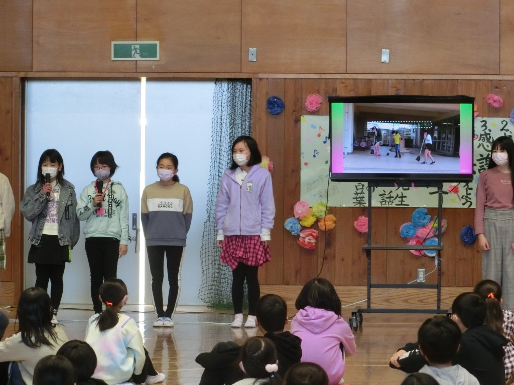 5年生は、6年生の活躍を動画にまとめ、感謝のメッセージと共に発表しました。