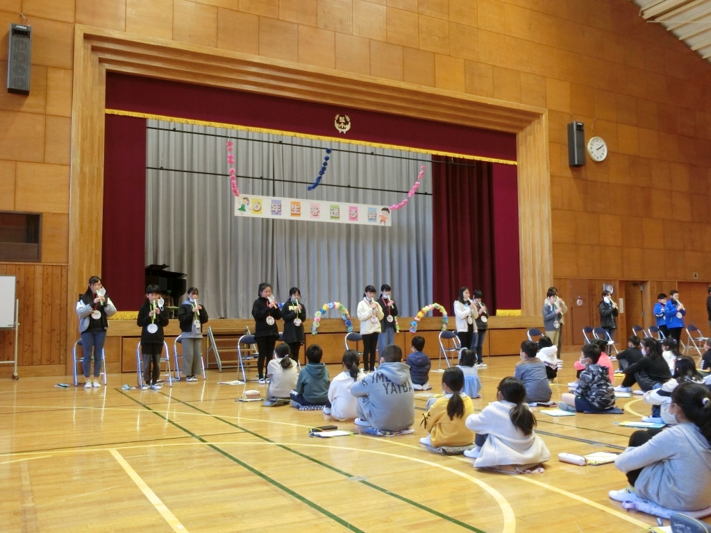 6年生から、在校生へリコーダー演奏と歌が送られました。