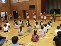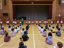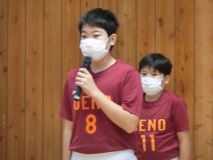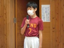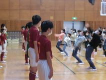 明日の地区サッカー大会に向け、壮行会が行われ、出場する選手一人一人が、力強く決意を述べました。全校のみんなからは、選手の健闘を祈って、エールが送られました。