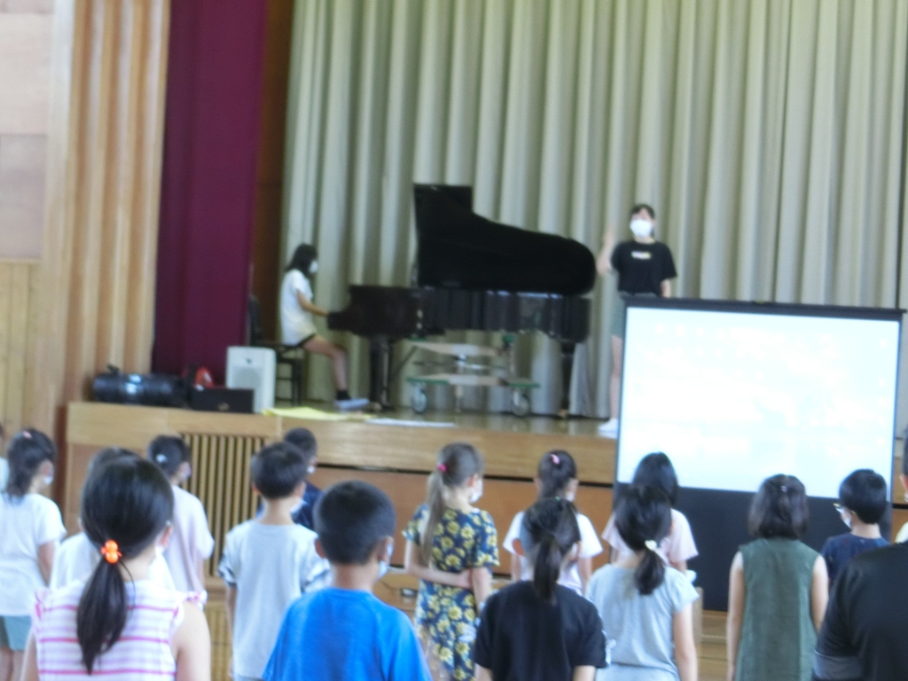 6年生の指揮とピアノによる校歌斉唱。