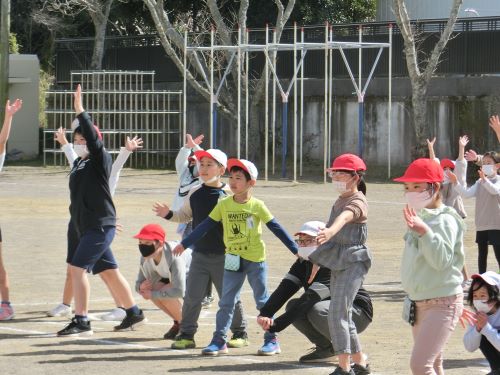 例年「6年生を送る会」では、全校でゲームをして楽しみますが、今年は体育館でのゲームを控えることになりました。そこで、昼休みにグラウンドにでて、全校でゲームをしたり遊んだりして、6年生と楽しく過ごすことになりました。