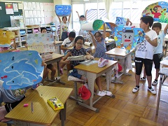 長い夏休みが終わり、上野小学校に元気な声が戻ってきました。どの子も、夏休みに頑張った課題を、自信をもって担任の先生に提出をしていました。久しぶりの学校生活に、友だちや先生方と楽しく遊んだり、話したりする姿がとても印象的でした。