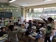 「おいしいね。」といいながら、みんなで楽しそうに食べていました。