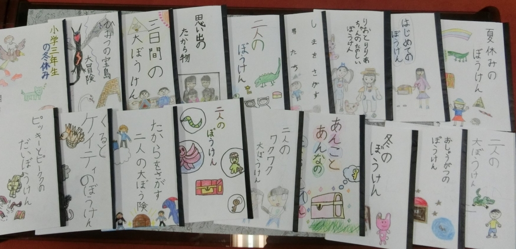 ついに完成した世界にたった一つの「ぼうけん物語絵本」。見た目は怖いのに臆病なトラや、白目を出して遊んでいるうちに戻らなくなってしまったワニなど、キャラクターはどれも個性的で、魅力的です。わくわくしたり、ほっこりしたりするお話に、思わず引き込まれます。3年生は、「ぜひたくさんの人に読んでもらいたい」と話していました。