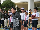 早朝より5・6年生がグラウンド整備やマラソンコースの掃き掃除をしてくれて、きれいに整備されたコースで実施することができました。また、地元の駐在所や国際武道大学のボランティアの学生に交通指導などをしていただき、安全に実施することができました。ありがとうございました。