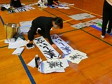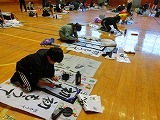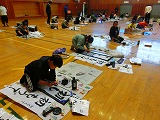12月17日(水)に3年生から6年生が体育館で、書き初め練習を行いました。