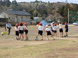 ステージの観戦スペースでは、サッカー部の部員、来年度から部活動に参加する3年生から温かく、大きな声援が送られました。終始和やかな雰囲気の中、子どもたちと一緒に楽しくプレーすることができました。