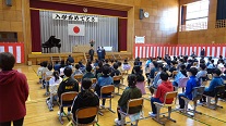 4月9日(木)、春の暖かな日差しの中、本校体育館において、統合宣言および入学式が執り行われました。はじめに、照川由美子市長より興津小学校と上野小学校、両校の統合が正式に宣言され、新生、上野小学校がスタートしました。入学式の新入生呼名では、元気いっぱいの返事が響き渡り、希望に満ちた新たな一歩を感じさせる場面となりました。