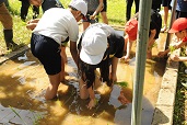 また、5年生では、先日の「代掻き」「肥料入れ」に続き、「田植え」を行いました。米づくりにおける土壌管理から、田植え、草取り、稲刈りまでの工程一つ一つを児童に体験させ、その苦労と感動を学んでもらいたいと願っています。